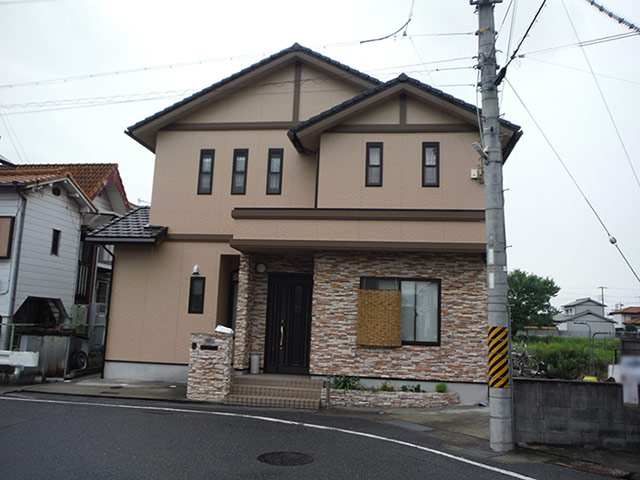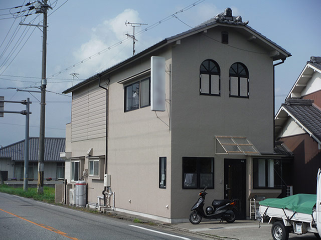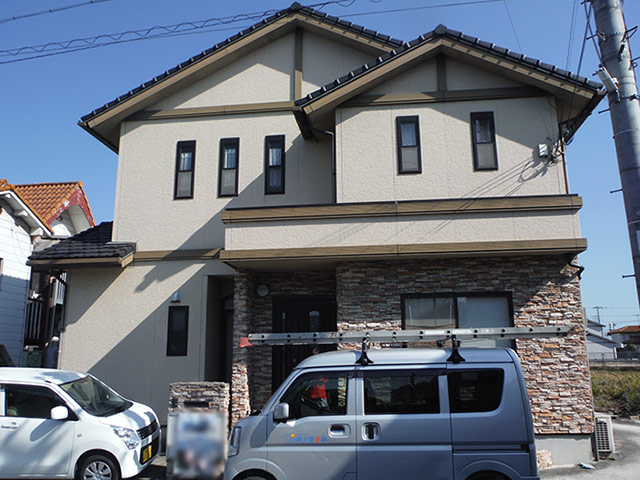 年末年始にご近所のお宅を塗装工事しているときに声を掛けていただき、施工することになりました。当社で施工した物件を見てみたいと仰いましたので何件かご紹介し見ていただきました。色もあまり近所にない色を塗りたいとのことで、何種類か塗板をお作りして決めていただきました。軒樋の破損もありましたので、すべて交換してほしいとのことでしたが、調査したところ、全体的には傷んでなく一部のみの交換補修で大丈夫という事が分かりましたのでその様にさせていただきました。 - お客さまの声