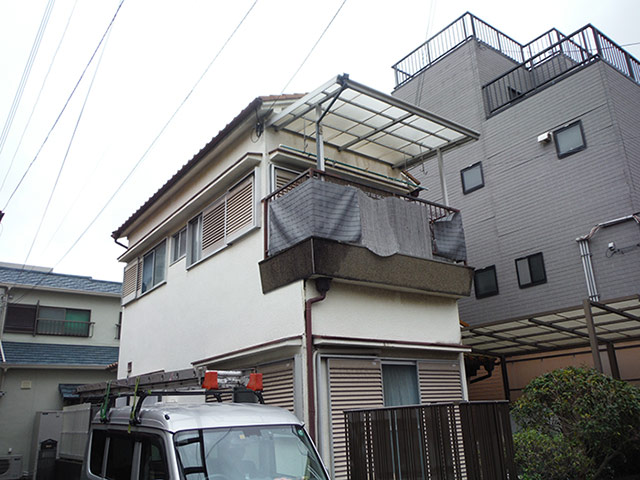 造園屋さんからの紹介でした。全体的にかなり傷みの進んでいるお宅でベランダからの雨漏りがしていました。