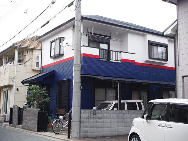 ダブルトーン模様を含めた何種類かの塗板を作り何度かの話し合いで決めました。イメージが変わってとても素敵な色合いになりました。屋根の割れなども樹脂注入で補修しました。 - お客さまの声