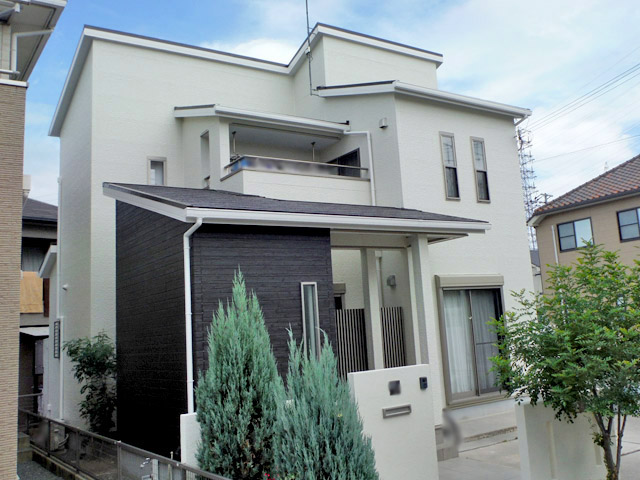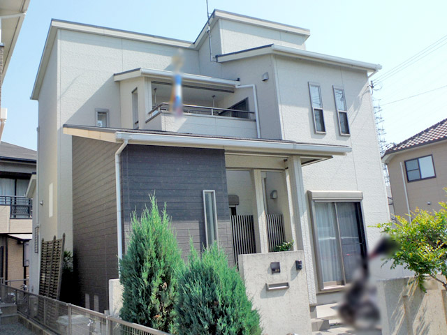 外壁からの雨漏りや外壁のクラックが多くあるお宅でした。しっかり調査し雨漏り箇所の特定及び補修を行い、しっかり下地処理を行って塗装工事を行いました。色もガラッと雰囲気を変えたいとのことで何種類かご提案させていただき写真の色に決まりました。 - お客さまの声