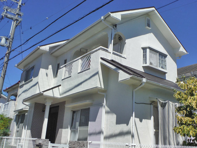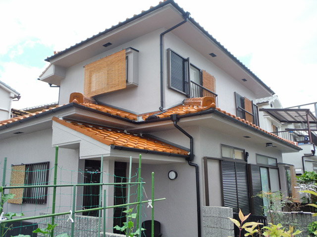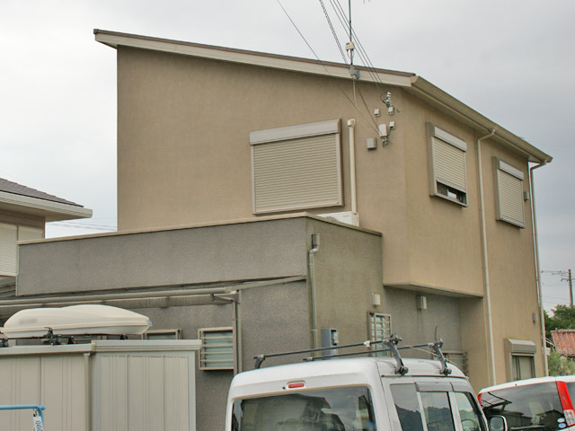 - お向かいのお宅を塗装しているときに、我々の仕事を見てご依頼くださいました。偶然ですが当社の職人が奥様と知り合いだったのもあり、信頼感が増したのではないかと思います。外壁はクラックが多く発生していましたし屋根はコケや藻などの発生が著しかったので、しっかり下地処理を行い塗装を行いました。そのまま放置していたらかなり大事になりそうな部分も見つかり、今回の工事は本当に良いタイミングだったと思います。
