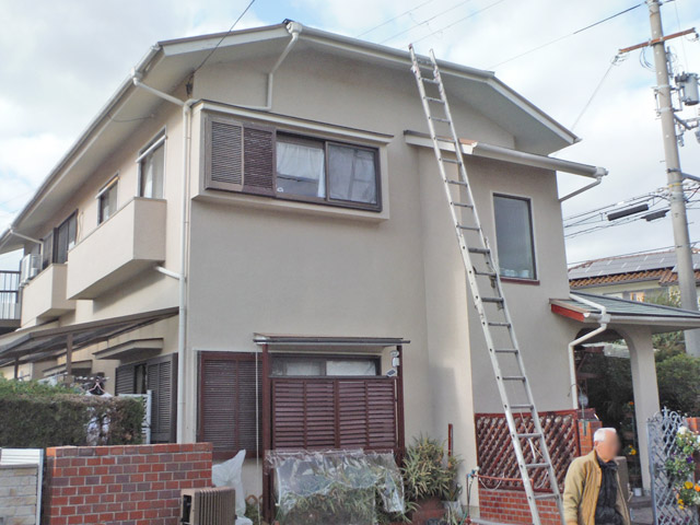- 弊社がお世話になっている税理士さんの事務所兼ご自宅の工事を依頼されました。顧問先で他にも塗装屋さんがおられる中、弊社に依頼してくださり、うれしいような重圧のような複雑なお思いでした。建物自体はかなり傷みが進んでおり雨漏りもしている様でした。一つ一つ劣化部分を補修しながらしっかり仕上げました。雨漏りの影響で室内の床が腐ってしまったり、クロスもめくれてしまっていたのでその部分も施工しました。