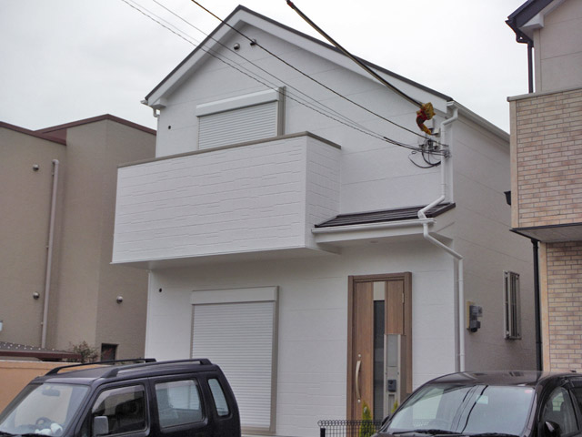 - 小冊子依頼の連絡が最初にあり外壁の調査を最初お願いされました。新築後屋根を一回塗装した以外一度も塗装していませんでしたので、コーキングの痛みがかなり進んでいました。あまりそのまま放置することはお勧め出来ないことをお伝えしてお見積りさせていただきました。コーキング作業を丁寧におこない、外壁屋根塀と全部塗装しとてもきれいに仕上がりました。