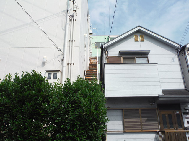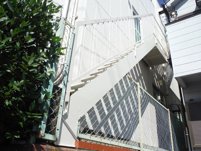- 使っていない非常階段でしたが、錆や塗膜の破片が近隣に飛んで迷惑をかけている様で塗装を依頼されました。かなり錆が進んでいたのでケレン作業に時間がかかりました。しっかり錆止めを塗布し上塗りして仕上げました。施工中にお隣の家のサイディングが剥離しているのを発見しましたので連絡し補修しておきました。どうやら光ファイバー工事の時に線を引っ張りすぎて剥離してしまったようです。
