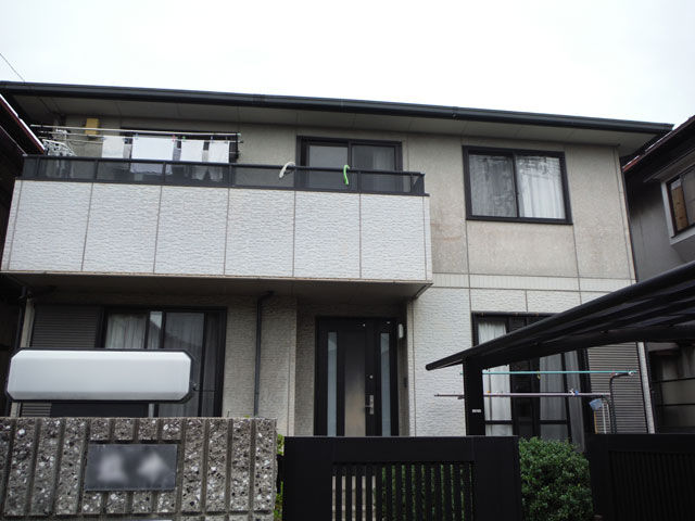 - 外壁は年数の割に傷みは少ないようでしたが屋根はかなり劣化が進んでいました。高圧洗浄すると黒かった瓦が真っ白になってしまうほど塗膜が捲れてしまいました。予定にはなかったのですが、屋根のシーラーを2回塗ってしっかりした下地を造ってから中塗り、上塗りを施工しました。ベランダの外壁のコーキングが劣化しており浸水が認められましたのでコーキングをしっかり補修し下のコーキングを外して浸水した水を抜いてから補修しました。