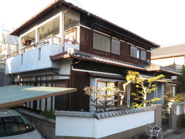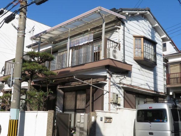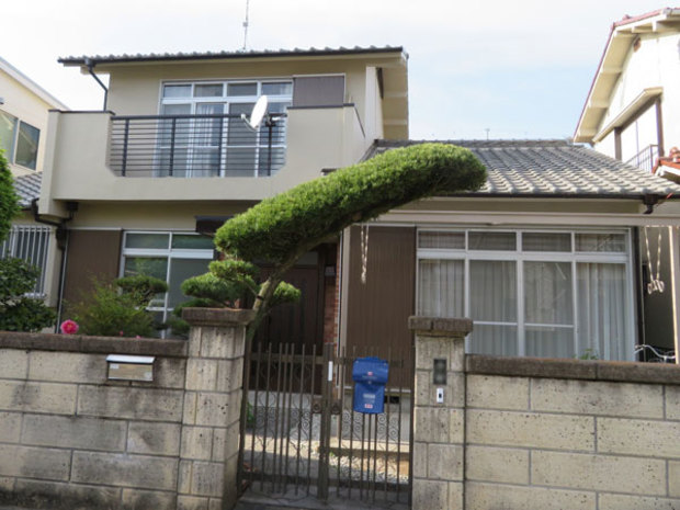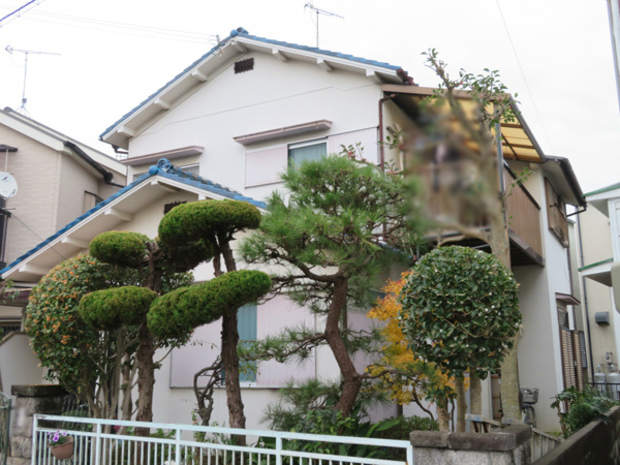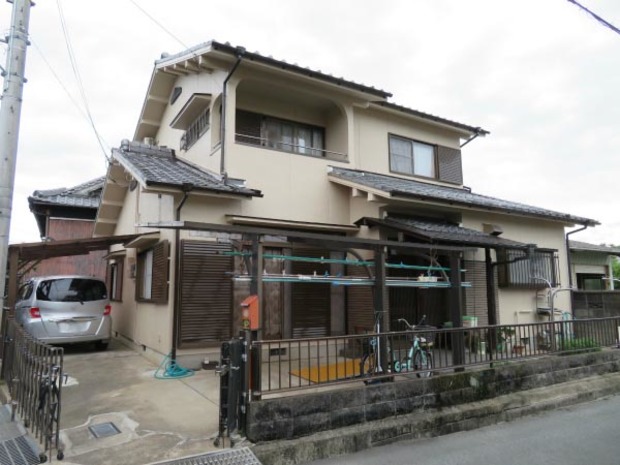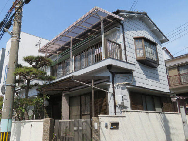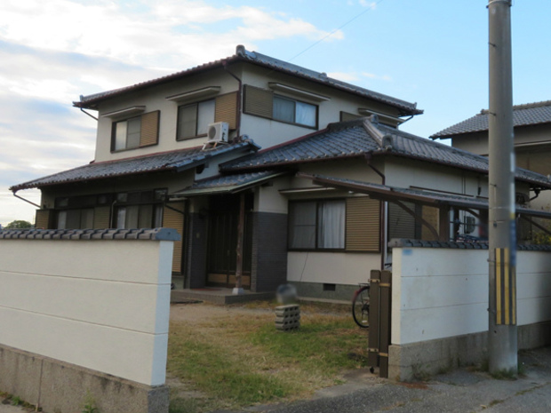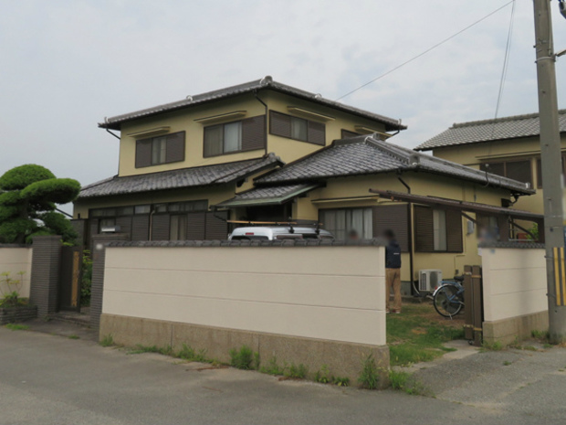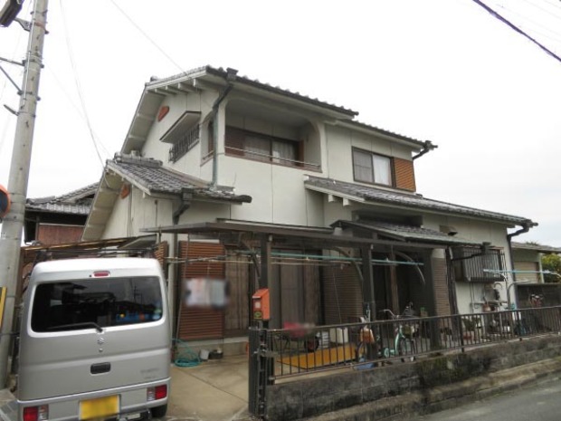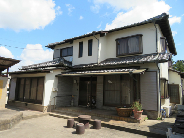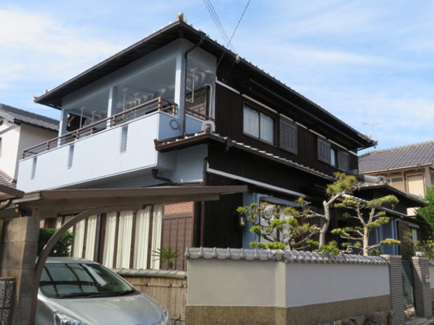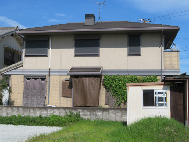 4年くらい前に施工した奥様の実家をご紹介いただきました。モルタル外壁半分焼き板外壁半分といった感じの建物でした。