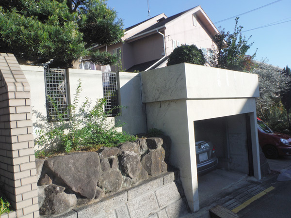 - 市の広報をご覧になってご依頼くださいました。塀の塗装と車庫上の防水工事の依頼です。車庫上には植木が植わっており、土やブロック、レンガ等を移動処分するところから行いました。できるだけ安く施工してほしいとのことで、本来は左官してウレタン防水したかったのですが簡易防水を行いました。