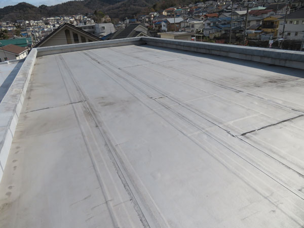 知り合いの紹介で最初は屋根の塗装と防水工事とお聞きして見積もりに行きましたが、施主様が屋根から雨漏りがしているので葺き替えてほしいとの希望を仰いました。カバー施工をお勧めし施工しました。ベランダも雨漏りがするとのことでした。調べてみると以前に増築している境の部分からでした。ご自分で何度も防水塗料を塗装しておられましたので、可能な限り塗膜を除去し下地を露出させて原因の処理を行いウレタン防水を行いました。