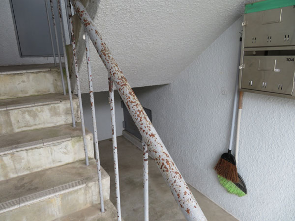 以前に1室工事をしたのですが、鉄部全体の塗装を依頼されました。かなり錆が進んでいましたのでしっかりケレンして錆止め中塗り上塗りの4工程3度塗りをしました。足場を組まずに施工することになりましたので、ベランダの手すりなどは室内から入らせてもらう必要が有りましたので、各住民様にアンケートなどを取り施工日時を決めていきました。年末の忙しい時期でしたのでどうしても年末年始の正月休みにしか対応出来ない方もいらっしゃいました。年末は31日まで。年始は4日に塗装させて頂く事で全室塗装することが出来ました。 - お客さまの声